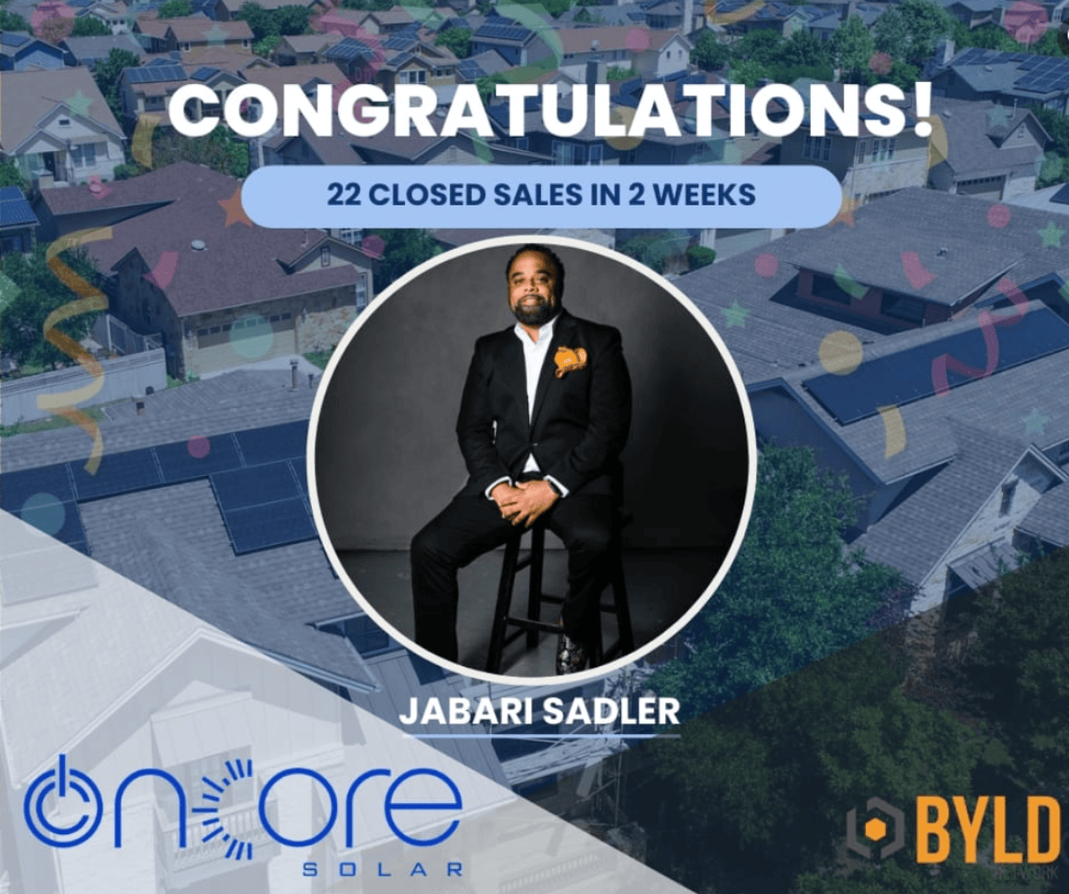 “Congratulations to my friend Jabari Sadler, 22 solar sales in 2 weeks! ALL VIA ZOOM!